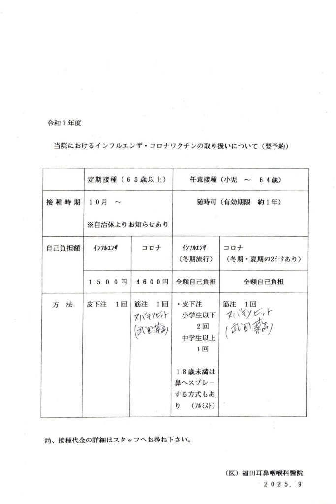 【当院におけるインフルエンザ・コロナワクチンの取り扱いについて(要予約】